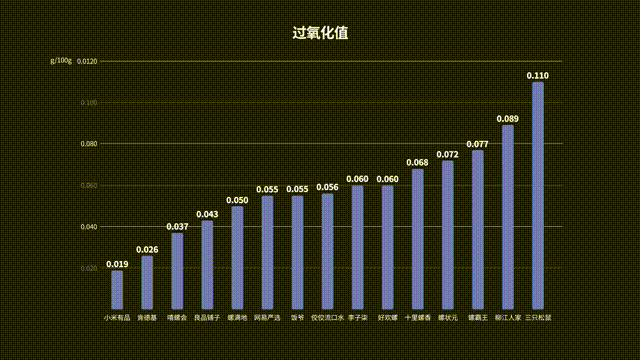 对了,我们还特别想知道这些方便食品的原料新鲜度,所以又加钱让实验室测了过氧化值。过氧化值高,表示油脂的酸败程度严重,说明螺蛳粉原料已经不新鲜了,你可能会吃出哈喇味。