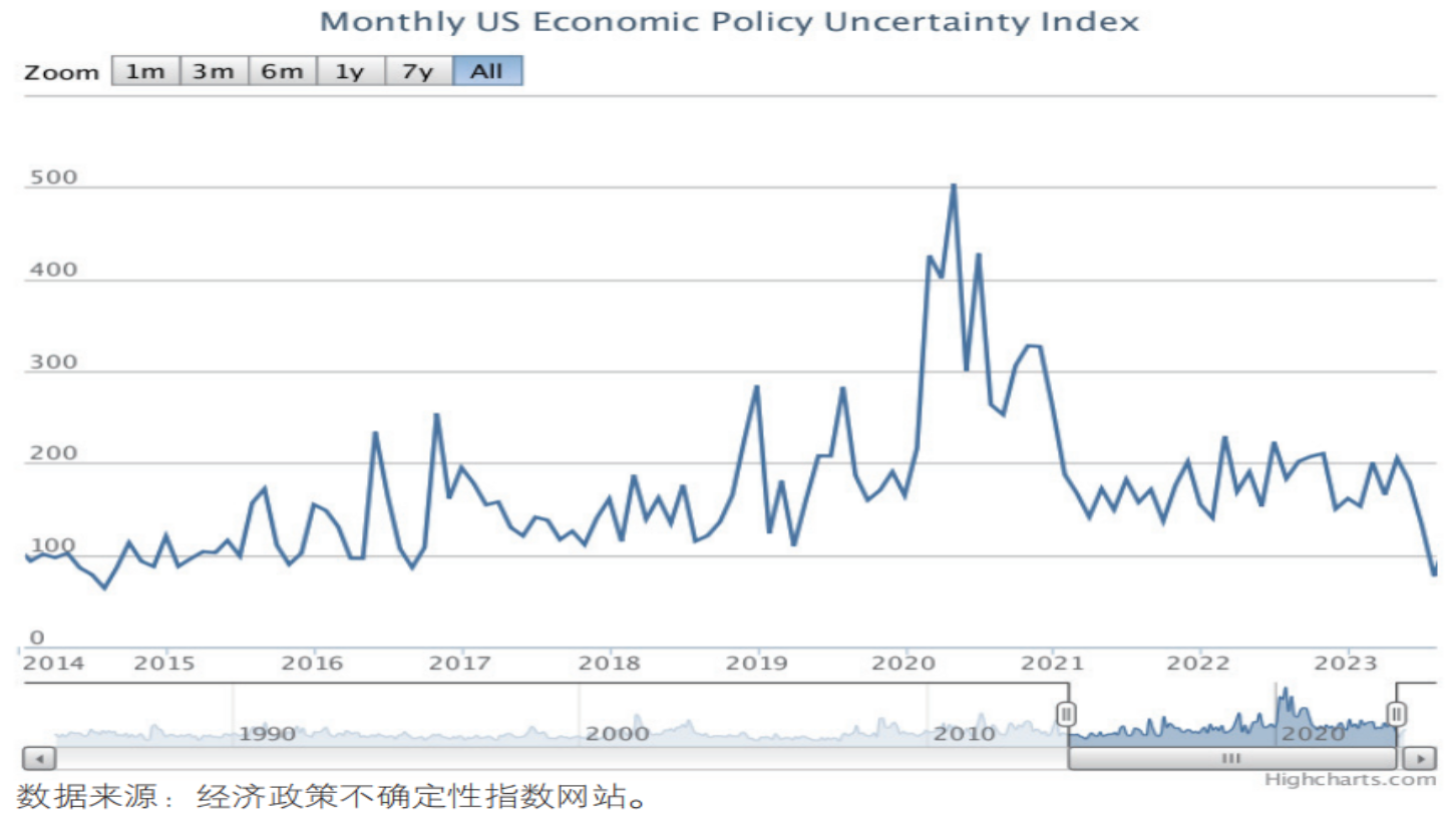目前基于网络抓取数据开展分析研究的实践非常普遍,美国Scott R.Baker等三位学者编制的经济政策不确定性(EPU)指数就是一个较为典型的案例。该指数当前已编制并发布全球以及多个国家和地区的测算结果,并得到较为广泛的认可和应用。以美国EPU指数为例(见图2),该指数的新闻分指数是基于全美销量排名前十的报纸,抓取含有“经济”“政策”“不确定性”等关键词在报纸上出现的文章数量,进行统计和标准化处理后建立的。