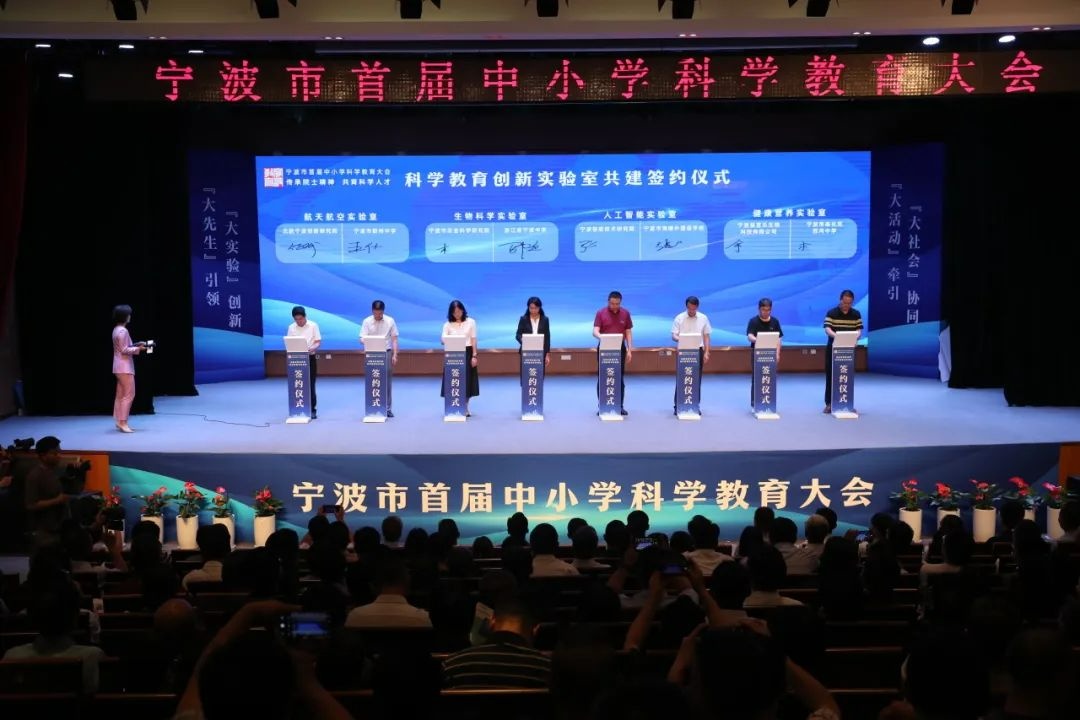现场,一批创新单位签约共建创新实验室。北航宁波创新研究院与宁波市鄞州中学签约共建航天航空实验室,宁波市农科院与宁波中学签约共建生命科学实验室,宁波智能技术研究院与宁波市海曙外国语学校签约共建人工智能实验室,宁波益富乐生物科技有限公司与奉化区西坞中学签约共建健康营养实验室。