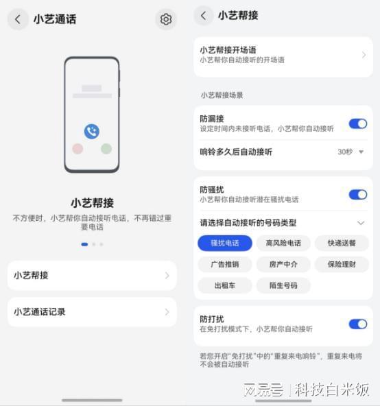 用户只需要点击“设置”、“小艺”、“小艺通话”,即可在“小艺帮接”中设置开场语、防漏接、防骚扰、防打扰等,通话体验更智能、高效。