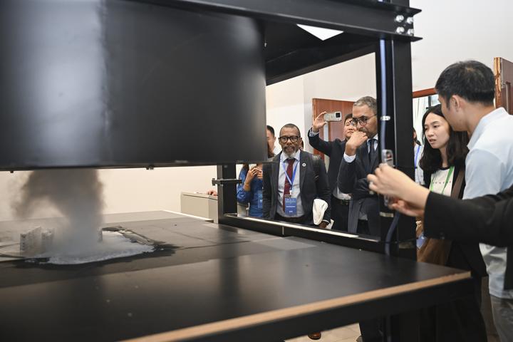 ▲2025年6月23日,联合国开发计划署驻华代表处和同济大学正式宣布启动“联合国开发计划署-同济大学城市防灾韧性创新实验室(RISE Lab)”。该实验室聚焦推进全生命周期智能防灾减灾,以及超大型城市韧性基础设施建设,为城市防灾减灾提供智慧支持。这是与会嘉宾在参观同济大学土木工程防灾减灾全国重点实验室。
