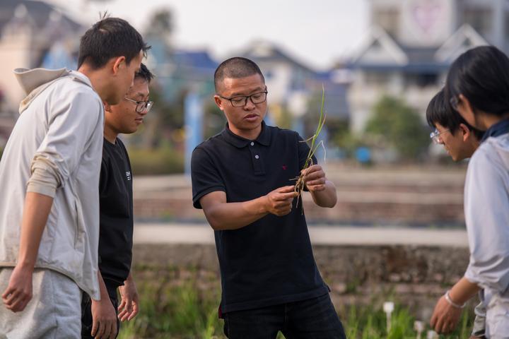 ▲今年37岁的黄光福是云南大学农学院的一名青年教师,同时也是云南大学在云南省勐海县勐遮镇曼恩村成立的多年生稻科技小院的负责人。多年来,他带领学生扎根田间,进行技术攻关。团队利用长雄野生稻特有的地下茎无性繁殖能力,成功培育出“云大25”“云大107”等新品种,突破性地实现水稻“一次栽种、连续收割”,让“割韭菜般收稻子”的农业成果从实验室走向田间地头。这是2025年2月27日,青年教师黄光福(中)在试验田间给学生授课。