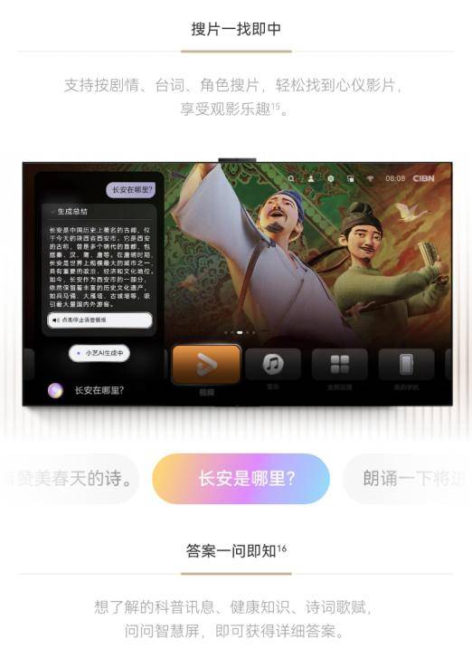 不仅如此,华为Vision智慧屏5还拥有百科问答功能,无论是生活中的常识咨询,还是对影视作品细节的求证,小艺都能给出专业且精准的回答。