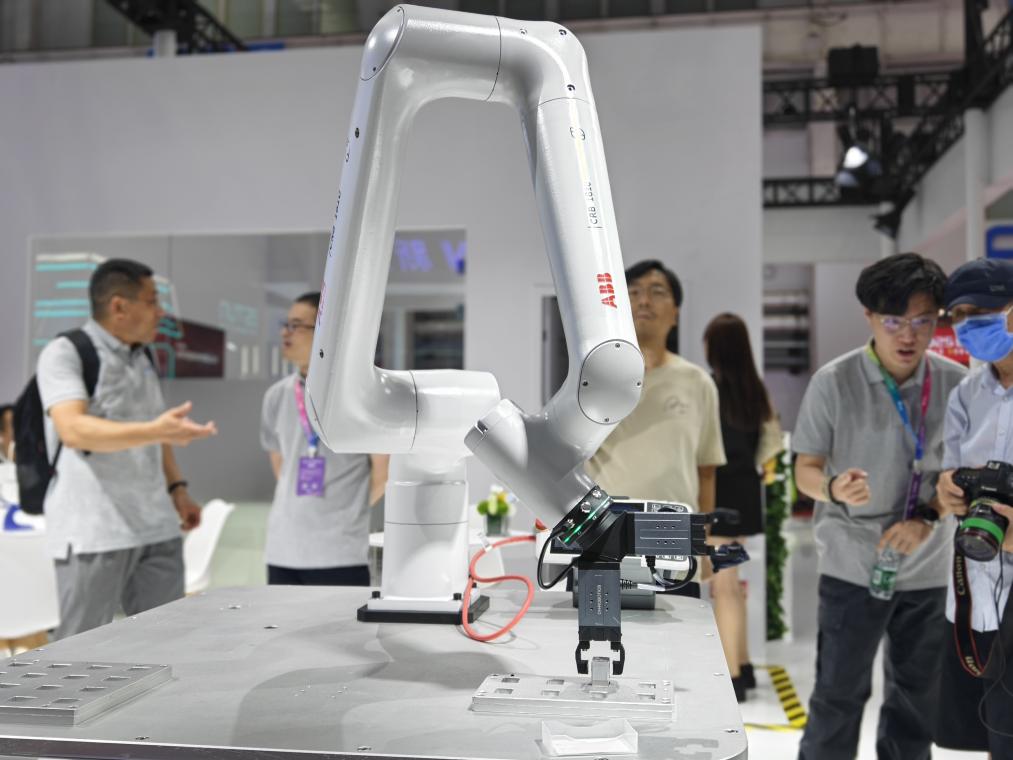 8月8日,ABB新系列协作机器人在2025世界机器人大会上进行全球首展。新华社记者 温竞华 摄
