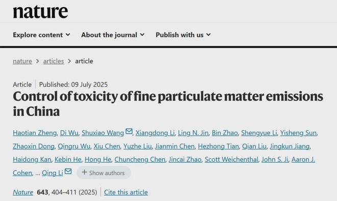 科研团队系统阐明了人为源排放PM 2.5 毒性效应及其成因,率先建立了人为源排放PM 2.5 的毒性谱,量化了我国PM 2.5 毒性的来源、时空分布及变化趋势,提出了以削减PM 2.5 风险为导向的、因地制宜的空气污染精准防控策略。