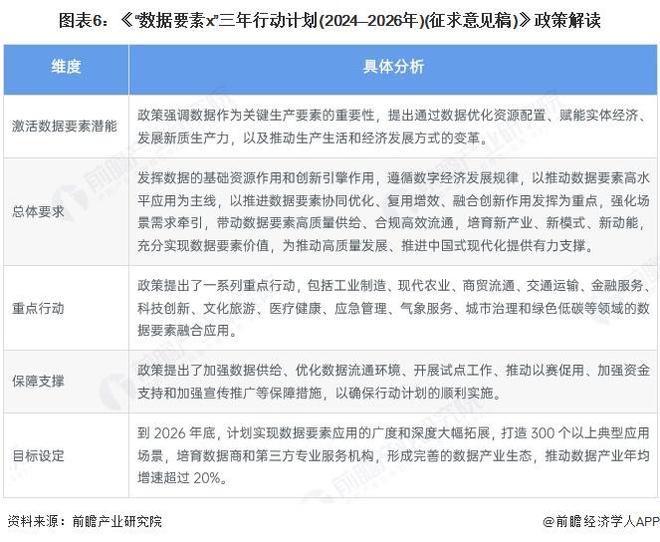 2023年12月31日,国家数据局会同中央网信办、科技部、工业和信息化部、交通运输部、农业农村部、商务部、文化和旅游部、国家卫生健康委、应急管理部、中国人民银行、金融监管总局、国家医保局、中国科学院、中国气象局、国家文物局、国家中医药局等部门联合印发《“数据要素×”三年行动计划(2024—2026年)》。《“数据要素×”三年行动计划(2024—2026年)》(征求意见稿)》是中国为了进一步推动大模型产业发展而制定的政策文件。该计划旨在通过激活数据要素的潜能,构建以数据为关键要素的数字经济,从而推动经济的高质量发展。以下是该政策的几个关键点: