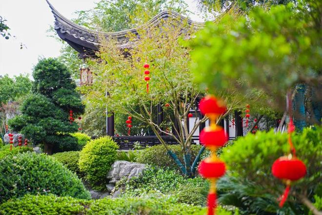 山石、花木、流水相映成趣,曲折巷道,将假山、亭台、院落等元素与“七坊”景观组团串联,“对景”“借景”“框景”无处不在,随处可赏、可游、可憩。