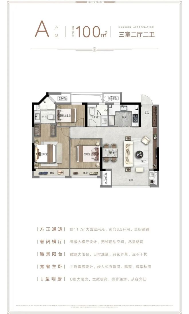 ,连接南向宽景阳台,则是全家人的“生活中心场”,亲子互动、朋友小聚、社交party,全部轻松拿捏。