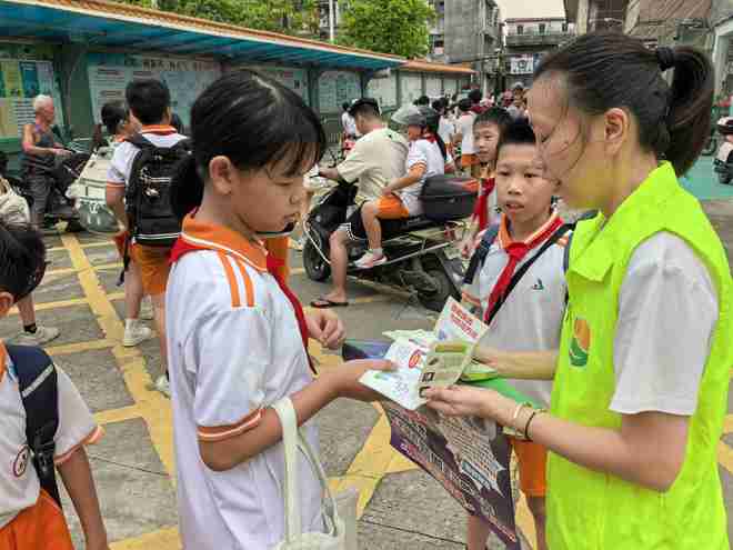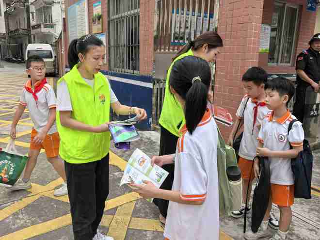 在暑假期间,筑牢青少年禁毒防线,提升学生识毒防毒拒毒意识,7月28日,平安新会建设领导小组禁毒工作组联合大鳌镇平安法治办及禁毒社工在大鳌小学校门口开展“禁毒宣传进校园 青春护航正当时”禁毒宣传进校园活动。