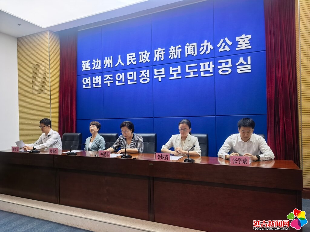 延边州委宣传部副部长文锡峰主持新闻发布会,州商务局副局长关亚菲,州文广旅局副局长金炫青,州体育局副局长张艳红,延吉市副市长张学斌参加发布会并介绍相关内容。