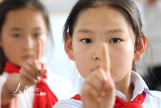 2025年6月5日,山东潍坊高密市昌安学校的孩子们在做“阳光亮眼操”。李海涛摄(人民图片网)