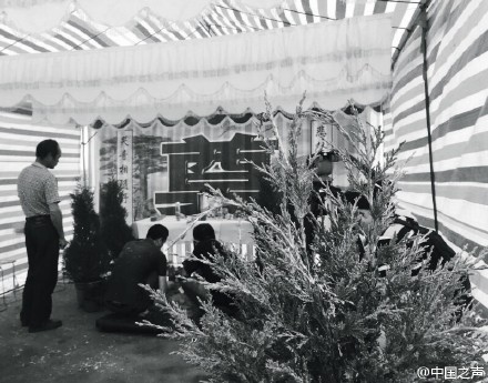 浙江省政府派到监利的工作组在一处空地搭起祭堂,一户来自杭州的家属摆上父亲的遗像和水果糕点等祭品,点燃香烛纸钱。(中国之声记者白杰戈)