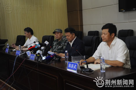 荆州新闻网消息(记者蒋斌)今天(6月2日)下午5点半,“东方之星”救援指挥部在监利县举行了第一场“东方之星”救援新闻发布会,交通运输部部长杨传堂,湖北省军区司令员陈守民,省政府副秘书长陈新武、省委宣传部副部长、省广播电视总台台长王茂亮参加新闻发布会。