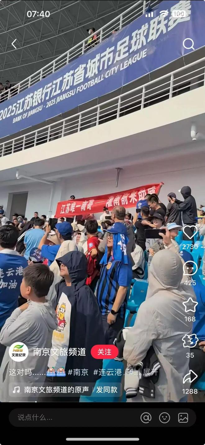 最搞笑的还要数南京与南通的比赛。赛前,这场比赛被视为“真假南哥之争”,还有南通球迷在网上嘲讽“为什么江苏城市联赛混进来一个安徽球队”。最终南京主场1比2负于南通,痛失“南哥”身份。这还不是最绝的,有球迷在现场打出横幅“江苏唯一南哥前来助阵”,这伙球迷来自灌南县(隶属连云港)。