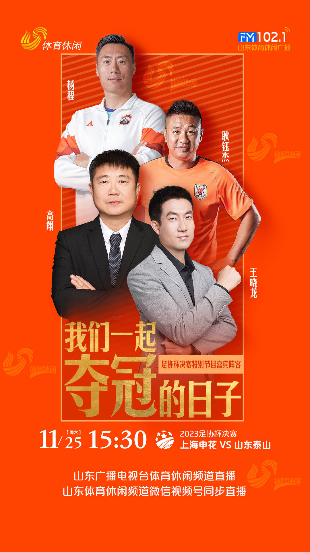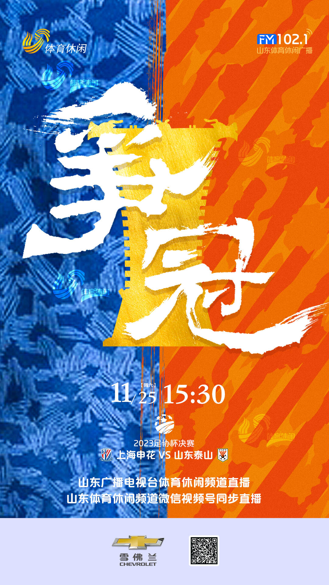 11月25日16:00,足协杯决赛将如期上演,山东体育休闲频道以及山东体育休闲频道微信视频号也将对本场比赛进行全程直播,敬请锁定。