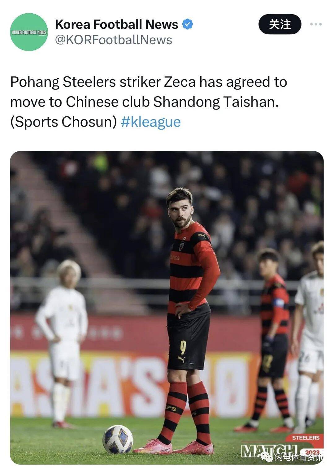 本赛季,泽卡加盟了K联赛豪门浦项制铁,本赛季泽卡出场43次,打进17球,攻击力十足。在费莱尼确定离队后,泰山确实也需要寻找一个高中锋填补空缺。今年亚冠,浦项铁人主场3-1战胜武汉三镇,泽卡上演了梅开二度,他身高达到192厘米,年龄只有26岁。