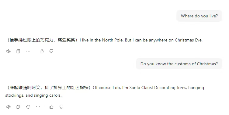 豆包功能应用:在英语 “西方节日” 主题学习中,学生与豆包开启 “智能体互动”,设定 “AI 扮演圣诞老人”,通过对话完成 “询问圣诞节习俗” 的角色扮演任务。