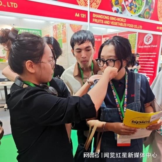 现场客户品尝金宫香辣蘸料,给出好评。共工社发展会期间,不少越南当地华侨客户、批发商及贸易商纷纷前来洽谈。其中,有客户对金宫的香辣蘸料表现出浓厚兴趣,希望在本地火锅食材供应市场展开合作;一位越南全渠道供应商详细了解了火锅底料与调味酱在口味、包装及渠道上的适配性,对金宫品牌实力与产品风味给予高度评价;来自胡志明市的食品批发商则现场索取了报价,表达了后续深入合作的意向。来自胡志明市的食品批发商咨询金宫产品与报价。共工社发此次亮相越南,是金宫继6月参加“2025泰国之约—中国(四川)精品购物节”后,“川味出海”战略的重要一站。越南与四川饮食习惯高度契合,市场潜力巨大,也是金宫重点布局的东南亚市场之一。借助展会平台,金宫不仅向世界展示了川派调味品的多样性与独特魅力,更收获了宝贵的市场反馈与合作契机。