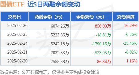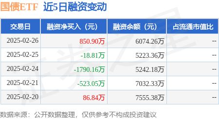 国债ETF:2月26日融资买入228608万元融资融券余额607426万元