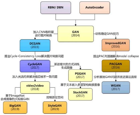 生成对抗网络(Generative Adversarial Networks,GAN)是用于无监督学习的机器学习模型,由Ian Goodfellow等人在2014年提出,由神经网络构成判别器和生成器构成,通过一种互相竞争的机制组成的一种学习框架,GAN 在深度学习领域掀起了一场革命。传统的生成模型最早要追溯到80年代的RBM,以及后来逐渐使用深度神经网络进行包装的AutoEncoder,然后就是现在称得上最火的生成模型GAN。
