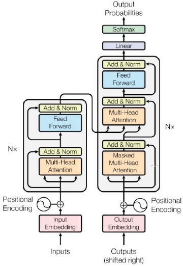 BERT的网络架构使用的是“Attention is all you need”中提出的多层Transformer结构,其最大的特点是抛弃了传统的RNN和CNN,通过Attention机制将任意位置的两个单词的距离转换成1,有效的解决了NLP中棘手的长期依赖问题。Transformer的网络架构如下图所示,Transformer是一个encoder-decoder的结构,由若干个编码器和解码器堆叠形成。下图的左侧部分为编码器,由Multi-Head Attention和一个全连接组成,用于将输入语料转化成特征向量。右侧部分是解码器,其输入为编码器的输出以及已经预测的结果,由Masked Multi-Head Attention,Multi-Head Attention以及一个全连接组成,用于输出最后结果的条件概率。