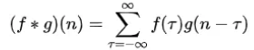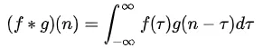 两个函数的卷积,本质上就是先将一个函数翻转,然后进行滑动叠加。在连续情况下,叠加指的是对两个函数的乘积求积分,在离散情况下就是加权求和,为简单起见就统一称为叠加。教科书上一般定义函数f,g的卷积 f*g(n)如下: