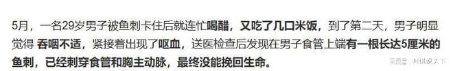 鱼刺卡喉,在生活中不算少见,想必不少人也在出现卡鱼刺的情况时,第一反应都是用“吞饭、催吐等方法”,但有时却暗藏“杀机”。