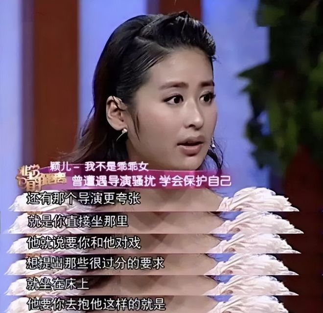 颖儿刚出道就有人给她打电话明示,如果肯付出“一点代价”就给她安排角色。还有一次更过分的,她去剧组递资料,导演提出极不合理的要求,试戏的时候让颖儿去床上抱着他。