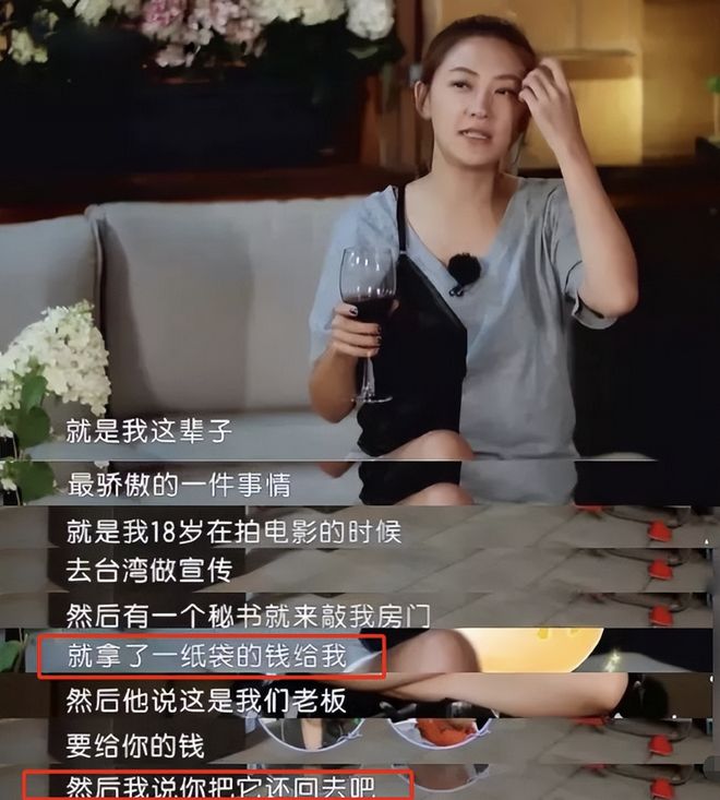 18岁那年她去台湾宣传电影,某富商让秘书拿着一大袋子的钱敲她房门,应采儿年纪虽小但也知道这钱不能拿,让秘书把钱拿回去。虽然看着很平静实则内心慌得不行,她当下打电话给她妈妈就哭了。