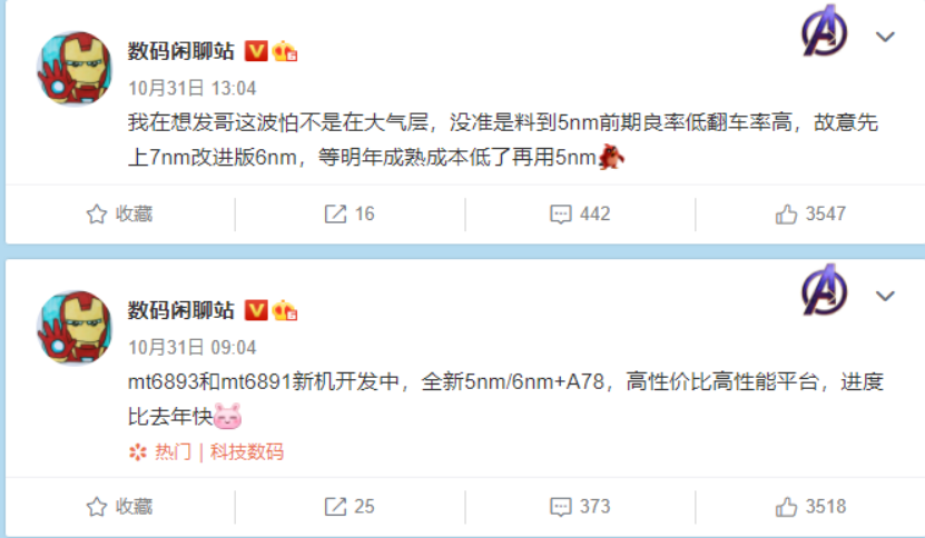 近日,据@数码闲聊站爆料称,联发科正开发两款全新芯片产品,代号为MT6893和MT6891。