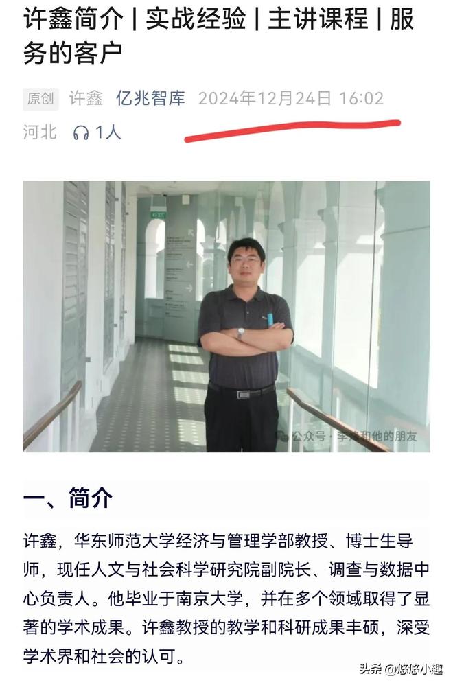 可以说,徐教授是一位德才兼备的好教授。去年12月24日,许教授还曾经公开露脸过,上过公开课。