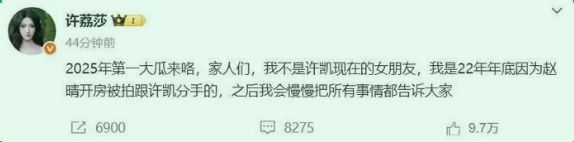 曾出演《卿卿日常》的女演员许荔莎通过社交平台发文,自曝与凭借《延禧攻略》走红的男星许凯有过一段恋情,并直言