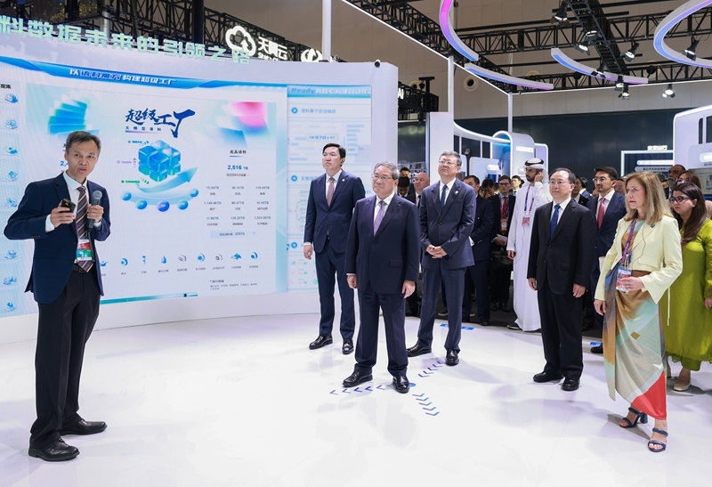 7月26日,国务院总理李强在上海出席2025世界人工智能大会暨人工智能全球治理高级别会议开幕式并致辞。这是开幕式后,李强同与会外方嘉宾、国际组织代表共同巡馆。