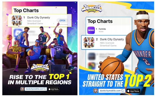 上周,游戏在全球范围上线后,也登顶了多个国家地区的游戏免费榜,就连在一向难攻的美国榜单,它也在开启预下载后迅速登上了游戏免费榜第二并持续一周(第一是刚刚回归iOS的《堡垒之夜》)。此前很少有篮球游戏能取得这个效果。