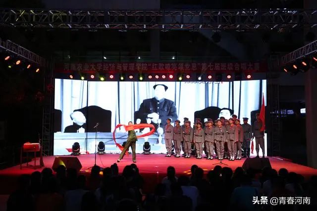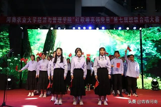 一首红歌,代表一段革命历史;一首红歌,记录一段峥嵘岁月;一首红歌,唱出一份报国之情。5月11日晚,河南农业大学龙子湖校区文化广场现场灯光璀璨,该校经济与管理学院第七届“红歌嘹亮颂党恩”班级合唱比赛决赛在一餐文化广场隆重举行,活动在筑梦艺术团铿锵有力的歌声中拉开帷幕,12支经管学子代表队一展风采,以饱满的热情向建党百年华诞献礼,大气磅礴的歌声和旋律歌颂了中华民族自强不息的伟大精神、阔步向前的豪迈气概,唱出了新时代青年对党、对祖国、对社会主义的浓厚深情和热情讴歌,歌声催人奋进,气势振奋人心。
