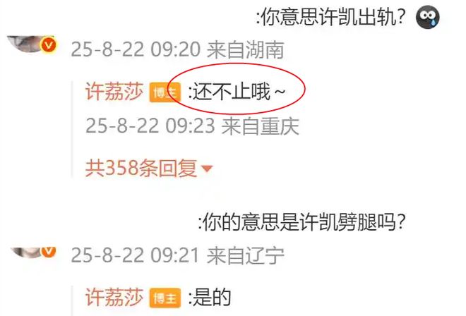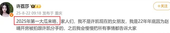 故事的导火索始于许荔莎的一条博文。这位籍籍无名的女演员直言自己并非许凯现任女友,而是 2022 年底因许凯与赵晴开房被拍而分手的 “前任”。当网友追问是否涉及出轨时,她的一句 “还不止哦” 瞬间点燃了吃瓜群众的好奇心。