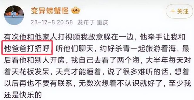 这些内容与她此前晒出的聊天记录形成互文,其中提到的 “视频见家长”“杀青旅行约定” 等细节,让事实显得越来越清晰,越来越可信。