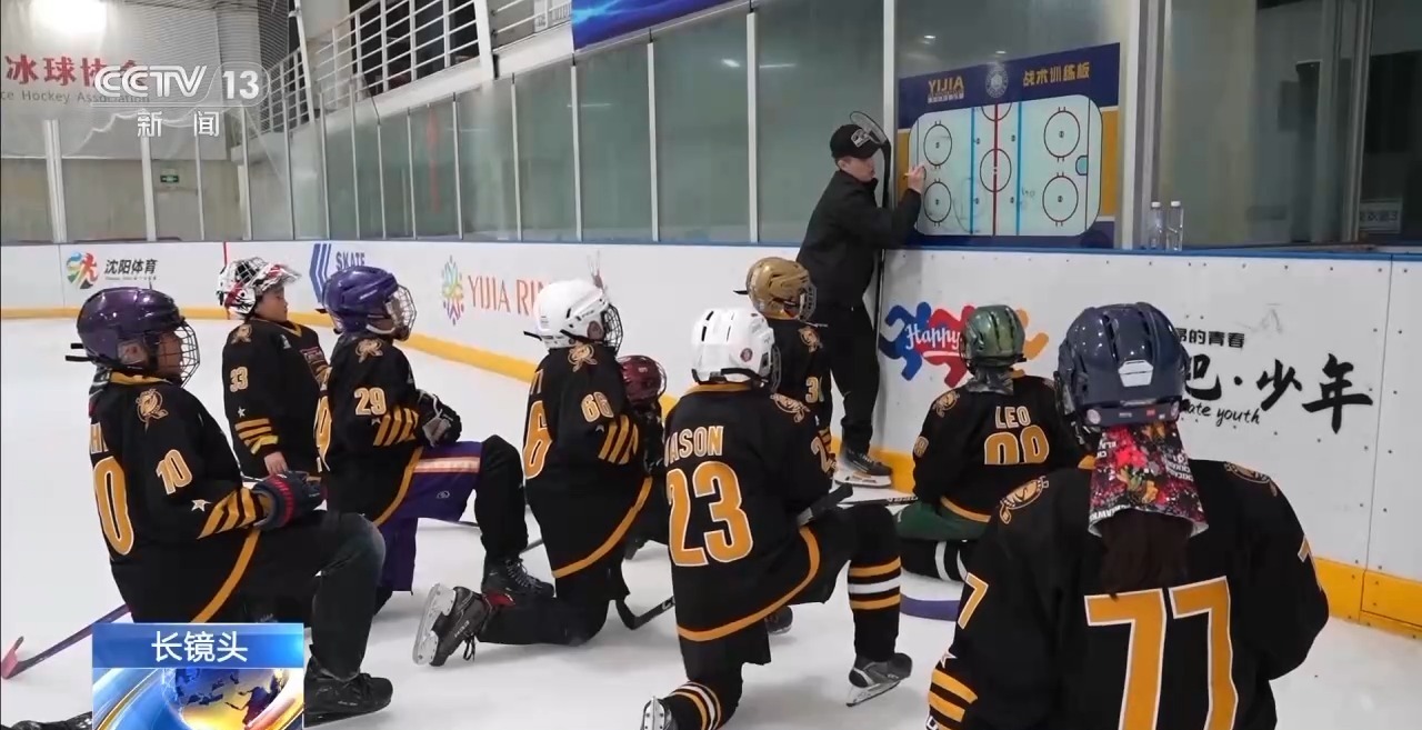 定点接球、门前抢点、大力击射,在沈阳市冰球协会冰上基地,12岁的贝禹燊正和小伙伴们在教练的指导下,一遍遍练习技术动作。