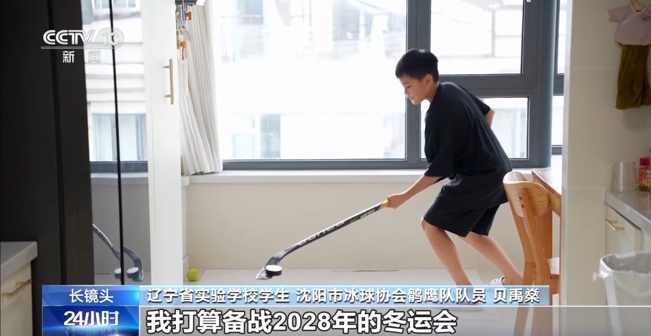 辽宁省实验学校学生 沈阳市冰球协会鹘鹰队队员 贝禹燊:我打算一直坚持下去。我打算备战2028年的冬运会,到时我的年龄正好够。
