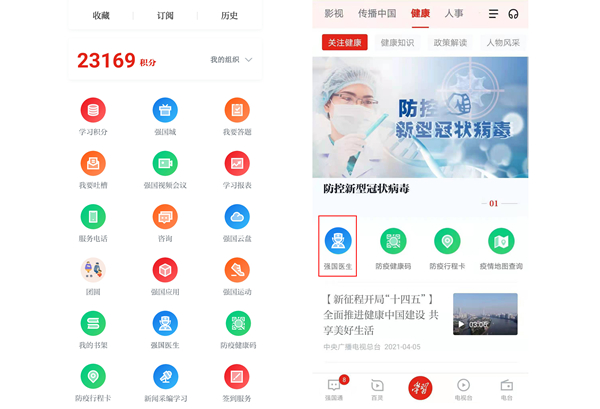 “学习强国”上线“强国医生”功能就医问诊更方便--健康·生活--人民网
