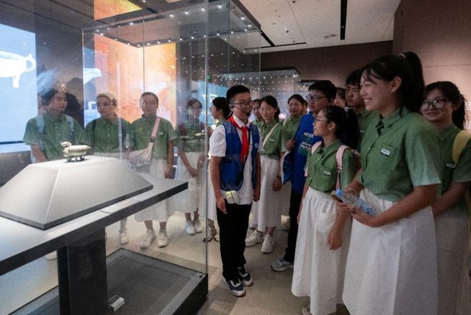 在“楚韵寻踪·触摸文明科技”环节,队员于安徽省科学技术普及基地——安徽楚文化博物馆探秘楚都寿春,从青铜器铸造中探寻力学原理,解析编钟音律与数学的关系,感受古人科学智慧。