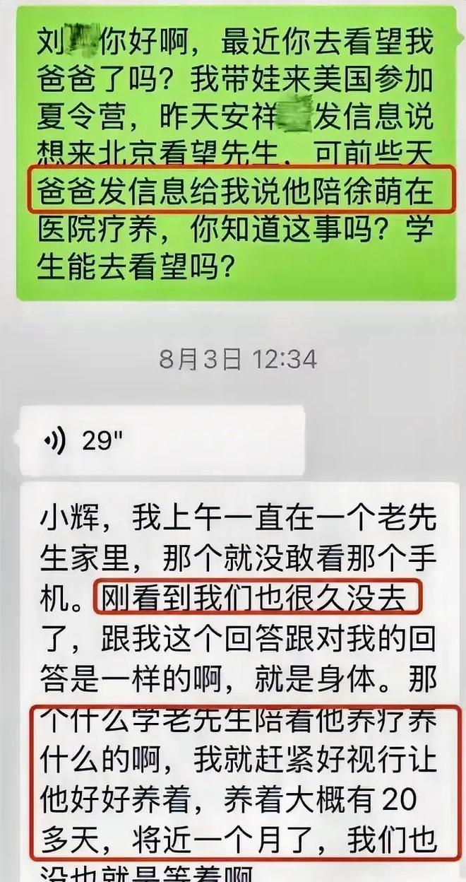 除此之外,范晓惠还晒出了和疑似家里佣人的聊天记录,对方也证实自己有一段时间没去看范曾了。说范老爷子陪着徐萌疗养,大概有一个月的时间了。
