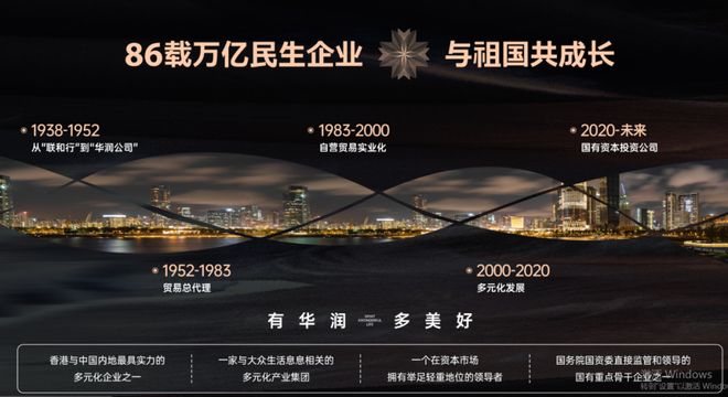 共和国长子,国务院国资委直接监管的国有重点骨干企业,2022年位列《财富》世界500强第79位,旗下拥有怡宝/雪花/东阿阿胶/999/华润万家等民生品牌。