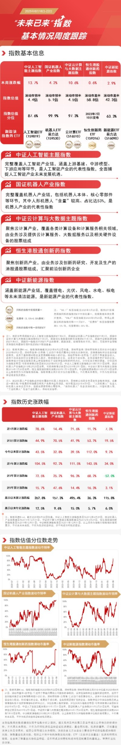 本周,中证人工智能主题指数上涨13.7%,中证云计算与大数据主题指数上涨10.6%,国证机器人产业指数上涨4.2%,中证新能源指数上涨2.9%,恒生港股通创新药指数上涨0.6%。