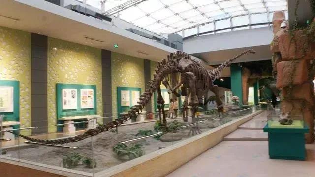 现存在甘肃省博物馆3楼的合川马门溪龙,于1947年在甘肃兰州市红古区海石湾被发现。其身长22米,颈长9米,高近4米,体重活着的时候约40—50吨,生活时代为距今1.4亿年前的侏罗纪晚期。它曾是亚洲第一、世界第二大恐龙,也是我国最早发现的蜥脚类恐龙化石。