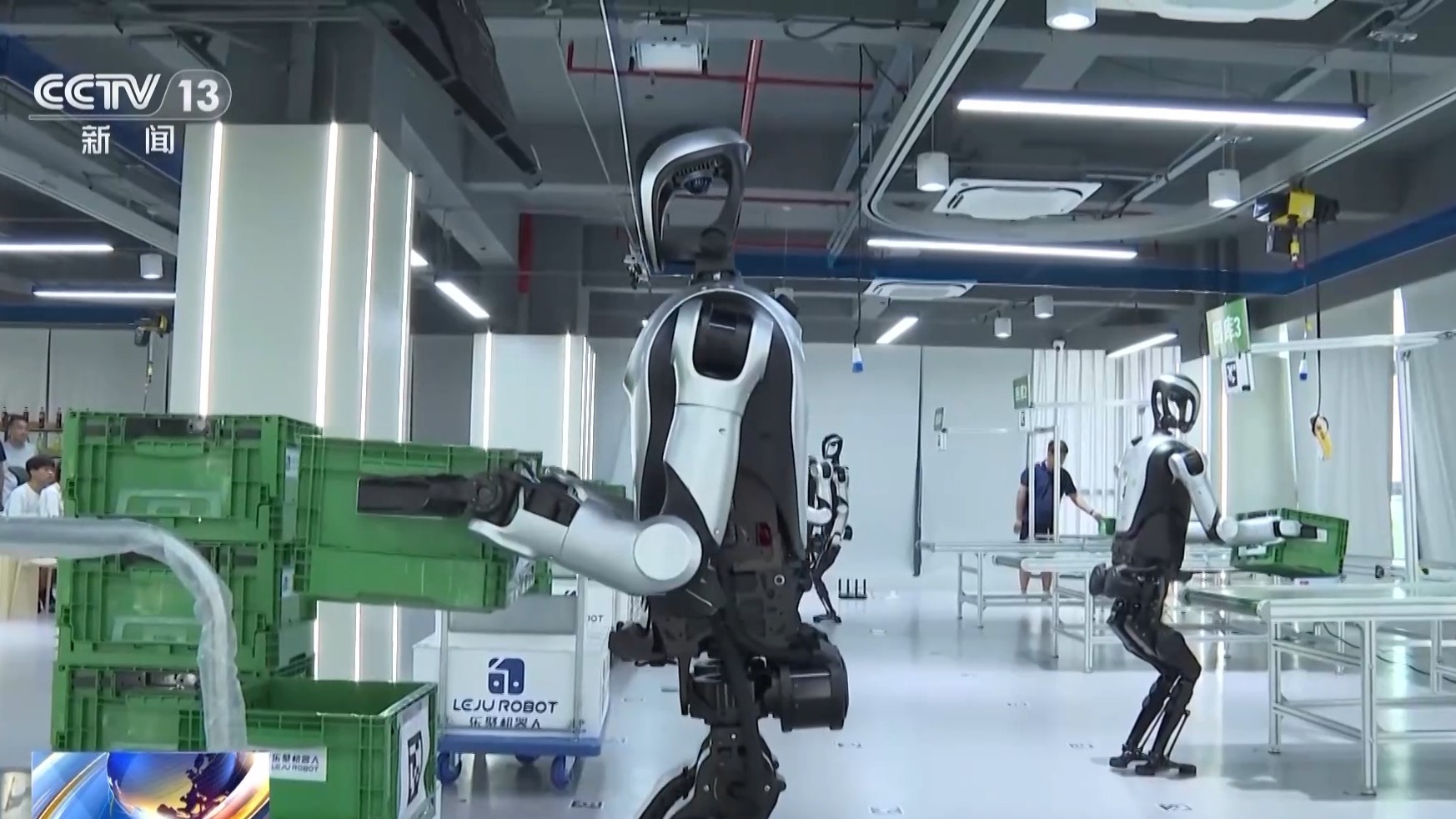 总台央视记者 古峻岭:我们看到它在搬箱子的时候动作还是非常流畅的,其实这么一个简单的一抓一取之间也是有门道的,他得精准计算箱子的大小和重量,里边儿有没有货物,用多大的力量,既不要把箱子夹碎,又能够正好把他抬起来。我们可以看到这款机器人一次工作的时长可以达到两三个小时,而且在工作过程中无需停止即可完成电池更换。