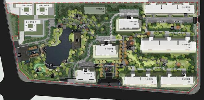 项目占地面积3.96万㎡,地上建筑面积约8.71万㎡。因有地铁线路穿越用地,设计师以大胆极致的规划手法,师法皇家园囿,在用地内造一片湖、兴一座园,让景观成为项目中的绝对主角。