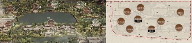 从世界自然园林顶峰之作——圆明园获取灵感,将九州九景御苑形制化为藏锋九境,铺展于大湖之上,以大开大合的气度诠释繁世隐贵的人文内核。