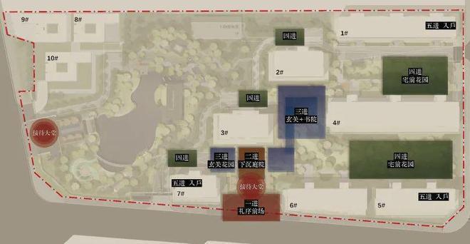 洋房区域自成组团,稳重舒展的东方气度显示出超高社区调性。三座四合院掩映于湖西一隅,京腔京韵浓缩于此。