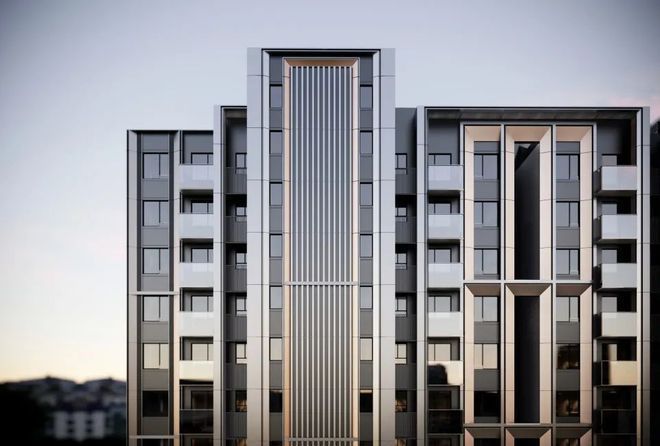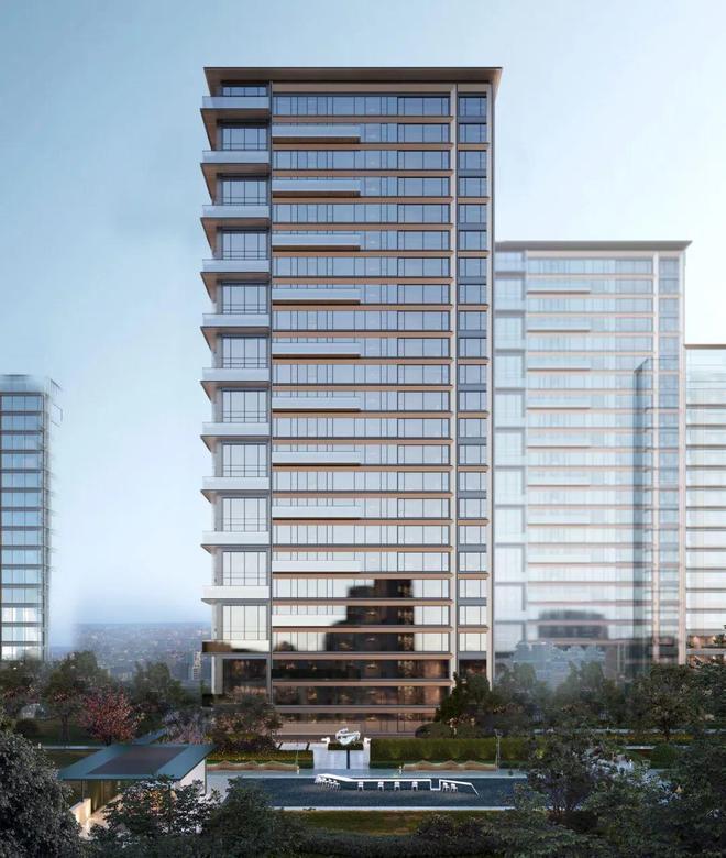 以现代语言转译传统元素,用暖色铝板的自然气息打破灰色金属的高冷印象。极细边框、纤薄阳台、外挂栏板等精工细节,科技感尽显。